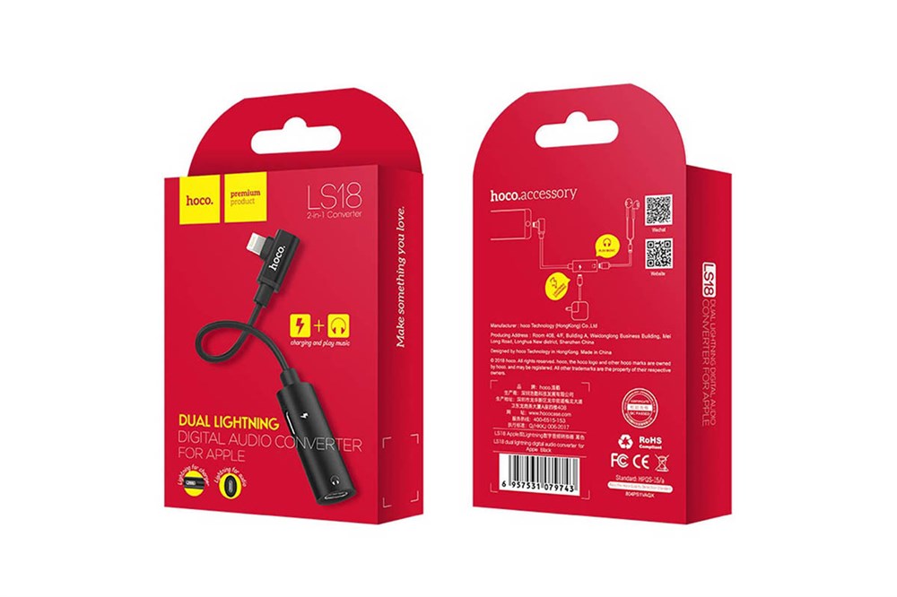 Audio конвертер Hoco LS - 18 для iPhone (Lightning → Dual Lightning)
