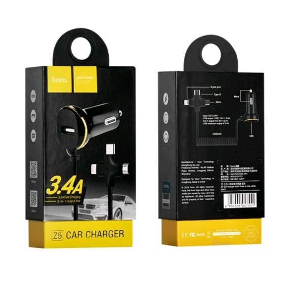 АЗУ Hoco Z5 + USB кабель 3 в 1 (Type C, Micro,Lightning)