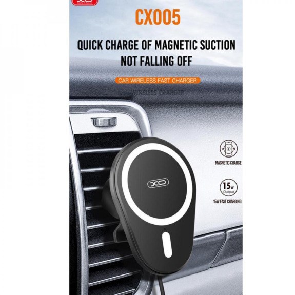 Держатель в автомобиль XO CX005 (Type C) в воздуховод + беспроводная зарядка (15W)