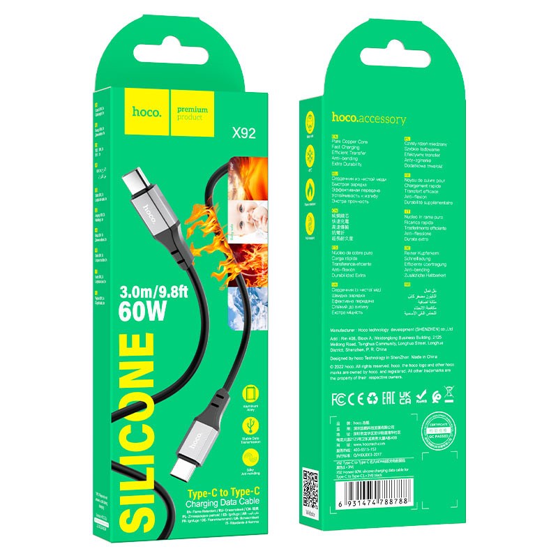 Кабель Type C - Type C Hoco X92 (3m) (коробка) (быстрая зарядка 60W)
