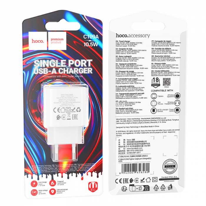 СЗУ Hoco C109A 1 USB (10,5W) (быстрая зарядка)