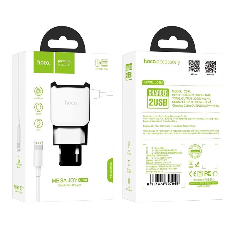 СЗУ Hoco C59A 2 USB (2.4 мАч) + USB кабель Lightning