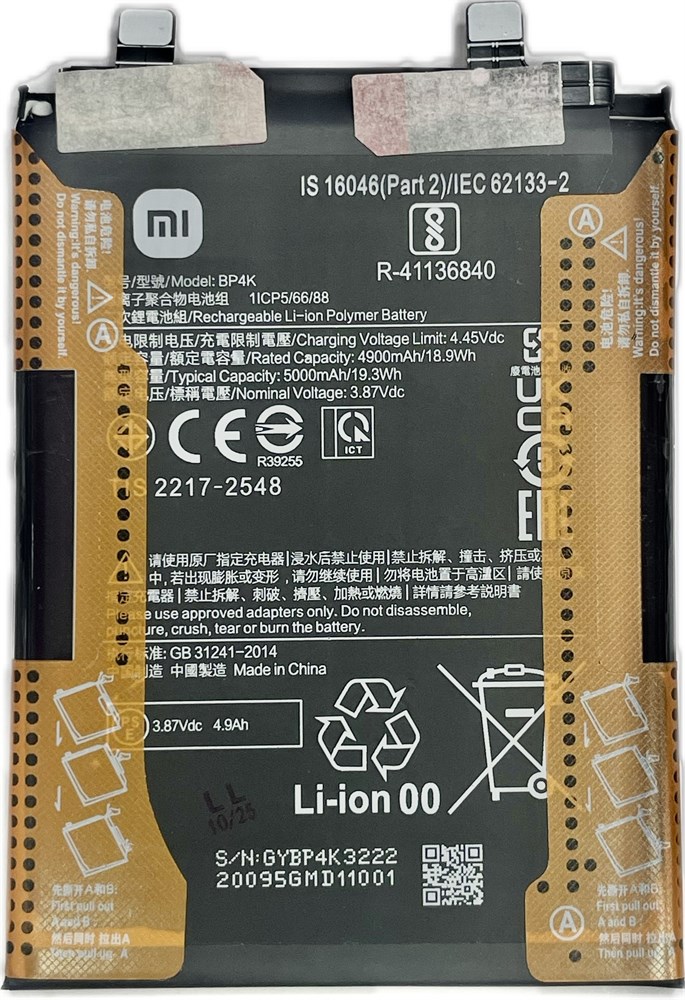 АКБ Xiaomi (BP - 4K) Poco X5 Pro (5G) / Poco F5 / Redmi Note 12 Pro (4G) / Redmi Note 12 Pro (5G) (на шлейфе) (ОРИГИНАЛ)