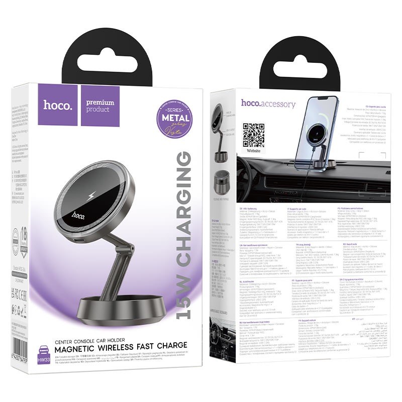 Держатель в автомобиль Hoco HW33 на панель + беспроводная зарядка (15W) (магнитный)