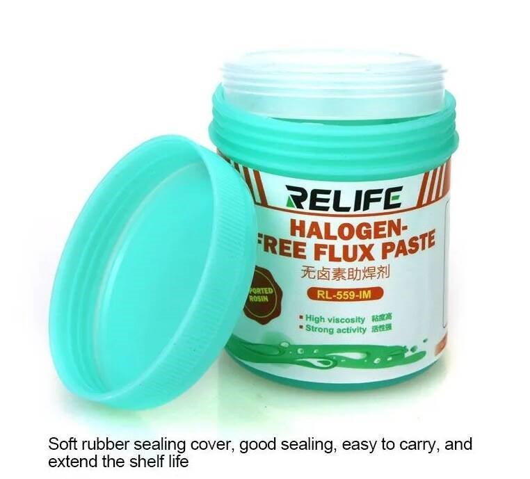 Флюс для пайки Relife RL - 559 (100g) (бессвинцовая и галогенная, экологически чистая паяльная паста с канифолью без очистки)