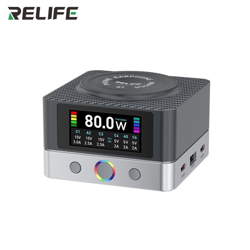 Многопортовое зарядное устройство Relife Q7 (6 портов; 80 Вт; беспроводная зарядка 15 Вт)