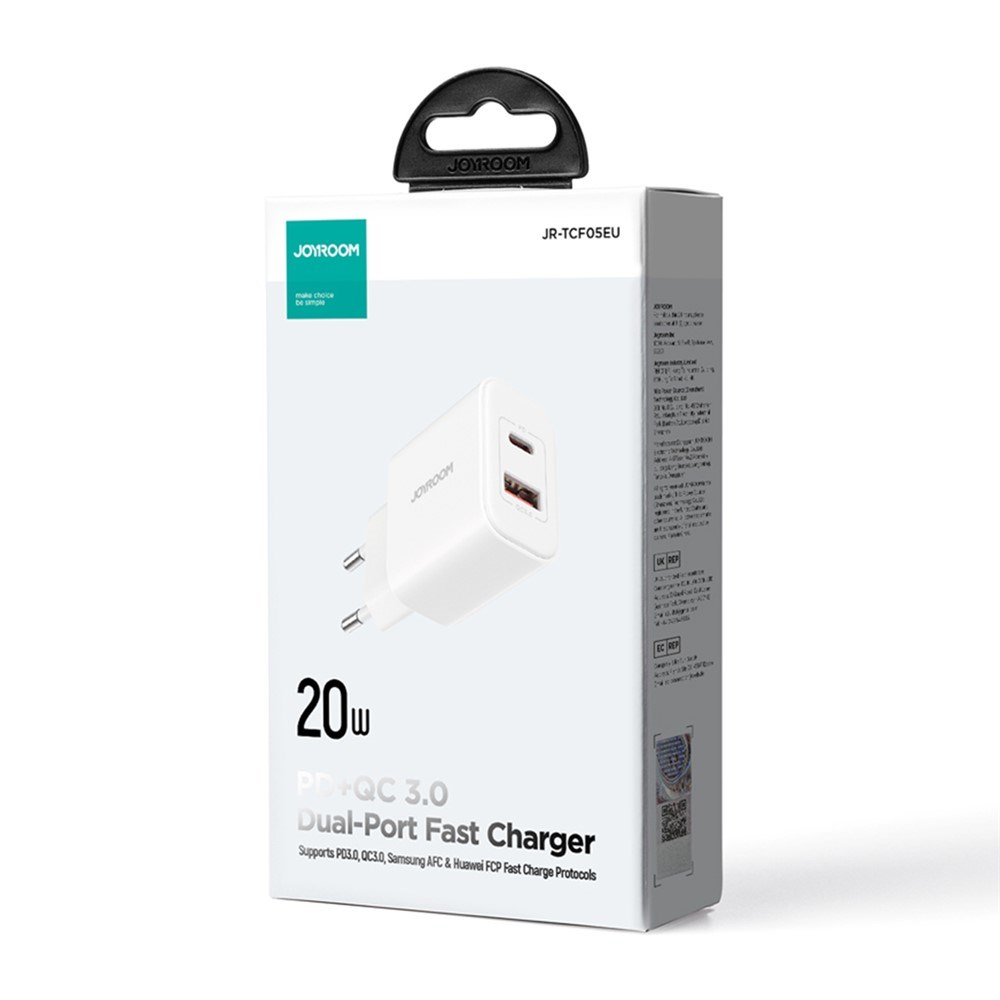 СЗУ Joyroom TCF05 1 USB (QC3.0) (быстрая зарядка) + 1 Type-C (PD 20W / 18W)