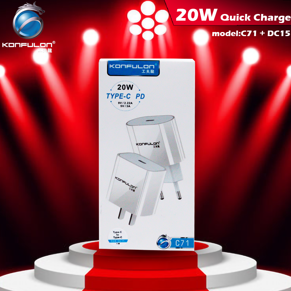 СЗУ Konfulon C71 1 Type-C (20W) + Кабель Type C - Type C (быстрая зарядка)