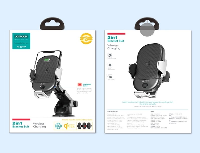 Держатель в автомобиль Joyroom JR - ZC187 на присоске + беспроводная зарядка