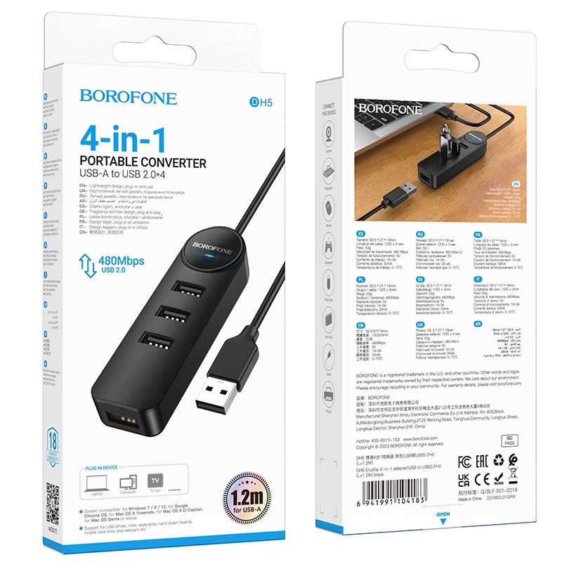 HUB Borofone DH5 USB - USB 2.0*4 (0.2м)
