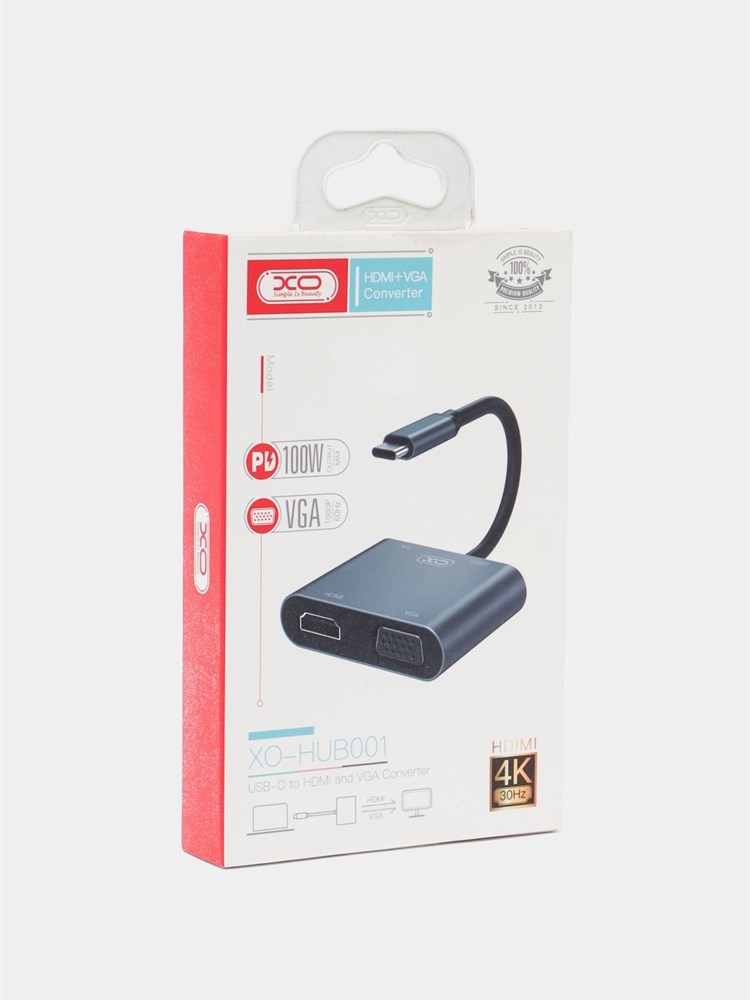 HUB XO HUB001 Type-C to USB 3.0,HDMI (4K),VGA,быстрая зарядка PD
