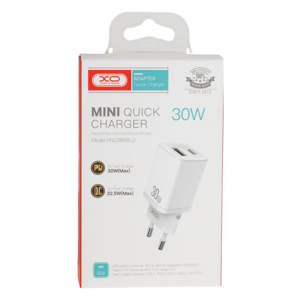 СЗУ XO HN238A 1 USB + 1 Type-C (PD 30W) (быстрая зарядка)