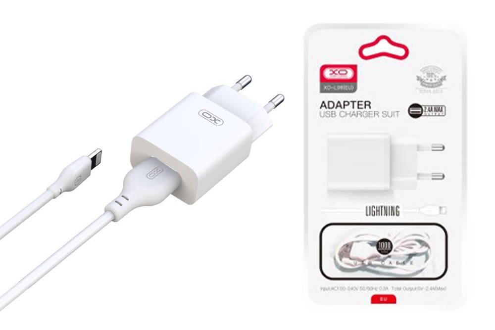 СЗУ XO L99 1 USB (2.4 A) + USB кабель Lightning (NB103)