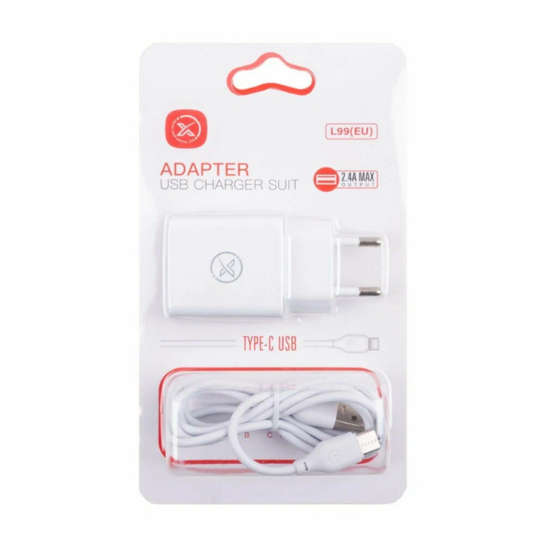 СЗУ XO L99 1 USB (2.4 A) + USB кабель Type C (NB103)